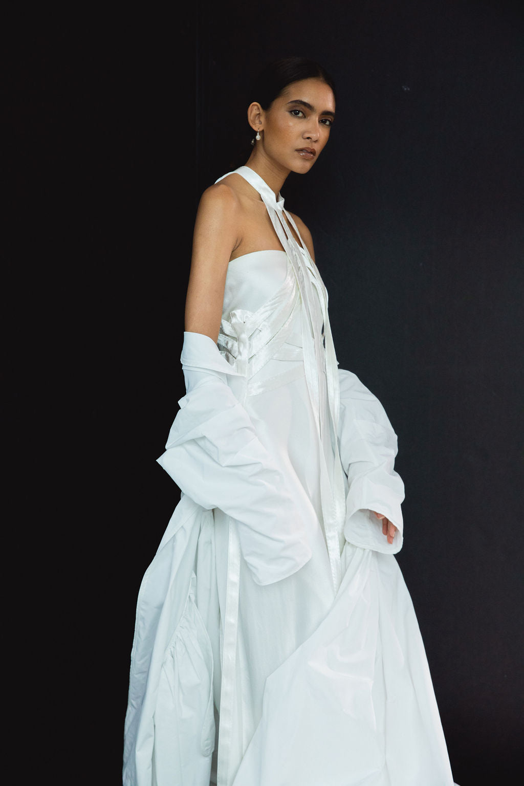 All of our gowns are made-to-order. Please allow 6-8 months to produce, purchasing 8-10 months from your wedding or travel date.
